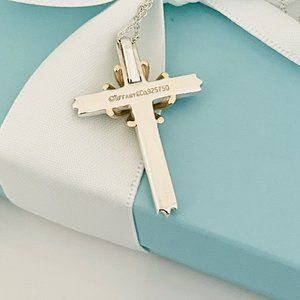 Guaranteed 100% Authentic Tiffany & Co Sterling Silver & 18k Gold Cross 16” Necklace.