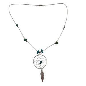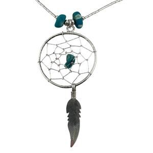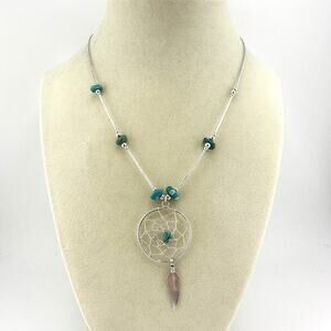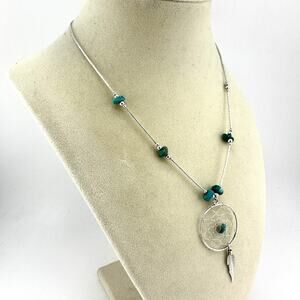 16” Vintage 925 Sterling Silver Turquoise Dreamcatcher Feather Charm Necklace