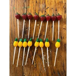 16 Vintage Strawberry & Pineapple Party Picks. Food picks. cupcake. Decor. Fruit
