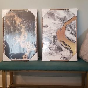 This is for the white, gray, gold, and hints of black, sealed with hanging hardware included. Navy Photo with hints of marble & teal listed separately. Can be used in any room and a great accent for white kitchen. 1005100