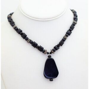 This is a 16 inch choker necklace with black stone-shaped beads.