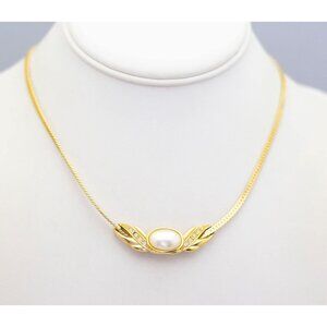 16 inch, Vintage Choker Necklace, Pearl Necklace, White Necklace, Rhinestone Necklace, Diamond Necklace, Gold Tone Necklace