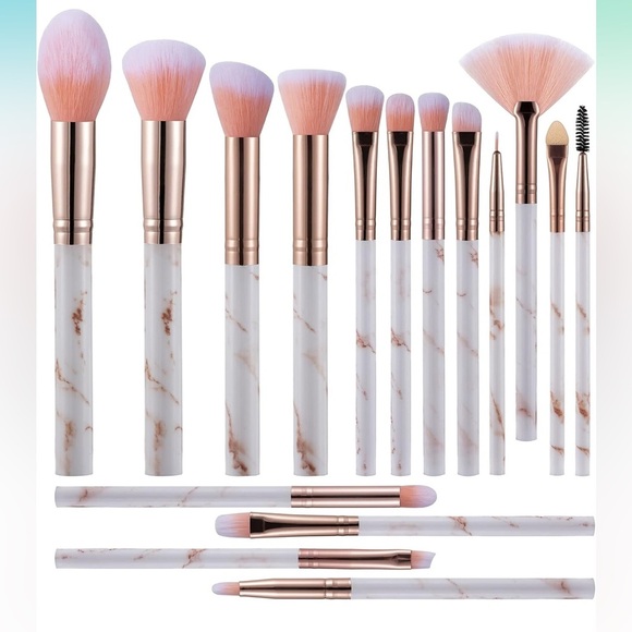 NWT 16 piece marbled handle makeup brush set. Perfect for contouring and various makeup applications.