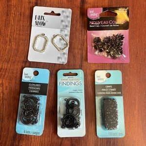 16 pieces Jewelry making supplies, beads, crimps, closures, pendants