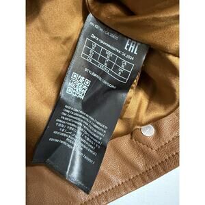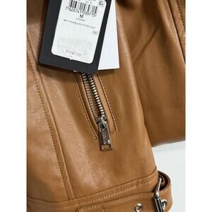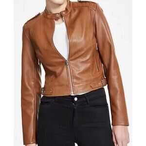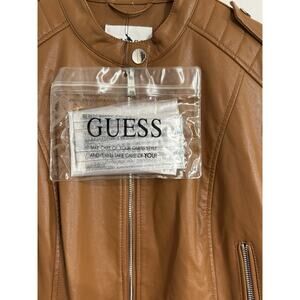 $160 GUESS Women's Faux-Leather Moto Jacket with Snap Collar Cognac Tan Size M