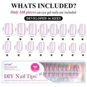 160 Pieces Pink Aurora Cat Eye Short Square Press On Nails