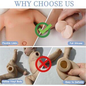 Full Silicone Baby Dolls: Compare to other reborn baby dolls, our all silicone baby dolls are meticulously handcrafted using high-quality silicone materials , with a soft and realistic texture, resembling a ' real ' baby.