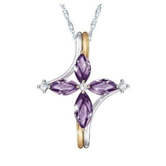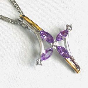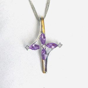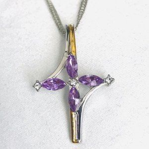 16-18" 2-Toned Cross w/Amethyst Marquise & CZ