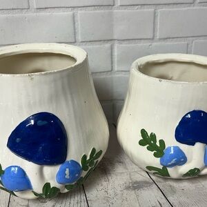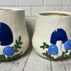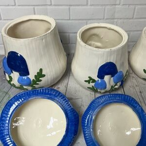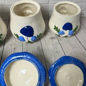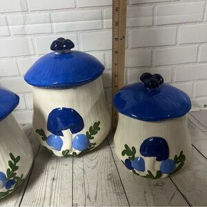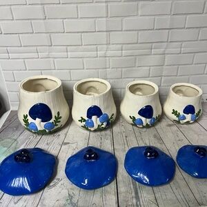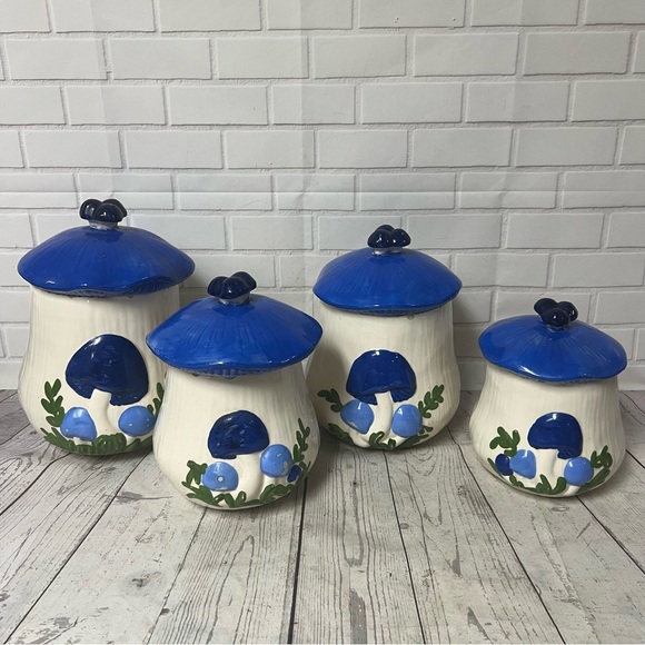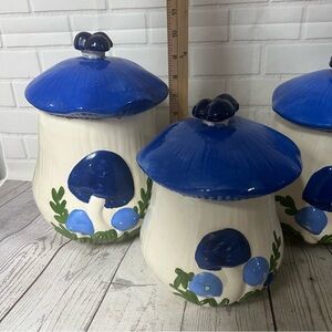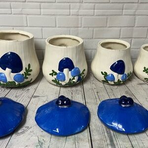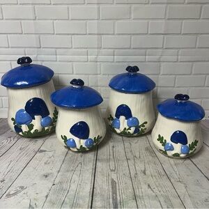 Vintage Arnel's Set of 4 Mushroom Blue Large With Lids Canister Jar Set 70’s