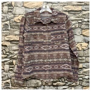 #165 Gilded Intent Buckle Distressed Southwestern Aztec Top Blouse Shirt Medium
