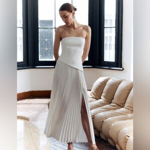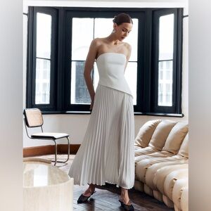 165 Solid Pleated Strapless Split Dress
