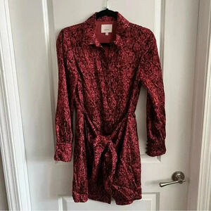 167 Cinq a Sept Gaby Tie Front Snake Print Shirt Dress Size 4