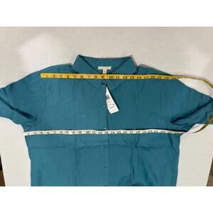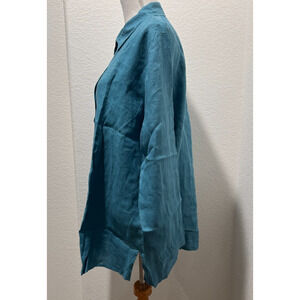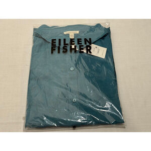 $168 NWT Eileen Fisher Organic Handkerchief Linen Shirt River Blue Sz XL Button