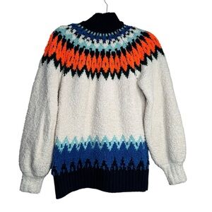 $168 Pilcro x Anthropologie Fair Isle Ivory Black Turtleneck Sweater XS