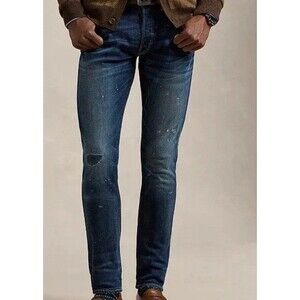 $168 Polo Ralph Lauren Men's Sullivan Slim Stretch Distressed Jeans Blue 38x30