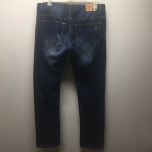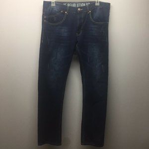 1688 Revolution Jeans Factory Distressed Color Blue Dark Wash Mens Size 38x32.