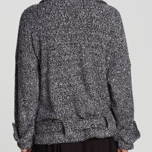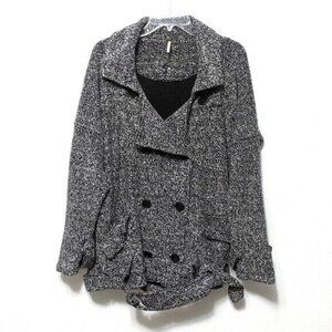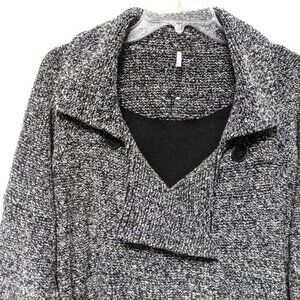 $169 Free People Slouchy Moto Jacket - Belted Trench Pea Coat Black Tweed SMALL