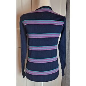 169. Vintage Meister Womens Navy Pullover Bright Striped Wool Ski Sweater 1980s