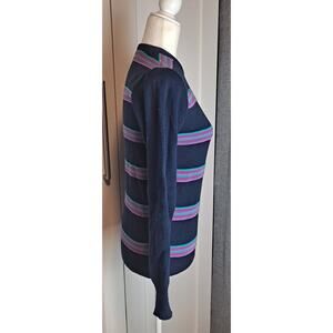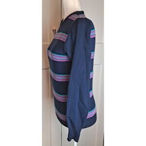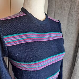 169. Vintage Meister Womens Navy Pullover Bright Striped Wool Ski Sweater 1980s.
