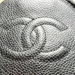 $1695 Authentic CHANEL Made in ITALY CC Logo Caviar Skin Black Jewelry Case