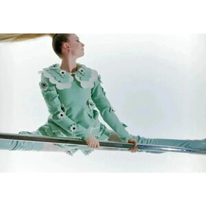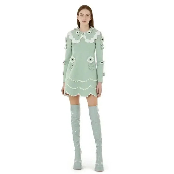$1695 VIVETTA 3 D EMBROIDERED BABY DOLL DRESS Sz 40 Mint Green aqua color