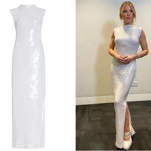 Shine in this elegant white sequin dress, perfect for any special occasion (hello reception dress 👰) The sleek design offers a sophisticated look but its sheerness brings the cute sexy!