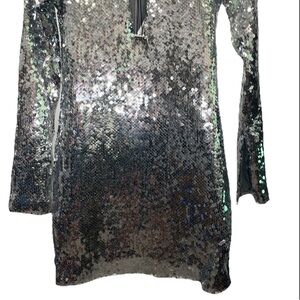 16Arlington Solaria dress mini sequin silver US 10 UK 14 keyhole cocktail NWT