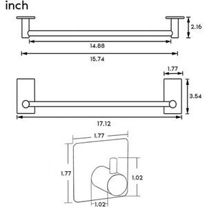 🧿Size: ①Towel rack: 16 inches; ②Adhesive robe hook: 1.7 x 1.7 inches.