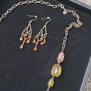 Beautiful long necklace with brown and green beads...matching dangle earrings. No flaws. Smoke/pet free home. BUNDLE AND SAVE!