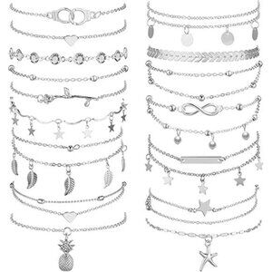 *Package includes: you will get 16 pieces of women anklets, they are in different styles, such as layered chain, leaf, heart, star and so on, you can change it everyday