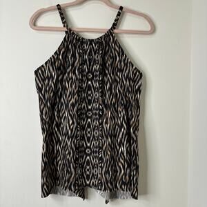 Make a splash with confidence in this Miraclesuit Topkapi Peephole Tankini Top (size 16W), an iconic mix of function and fashion. Celebrated for its shaping prowess—“Look 10 lbs lighter in 10 seconds®”—this stylish tankini nips and lifts where you need it while flaunting luxury fabric feel and flattering fit.