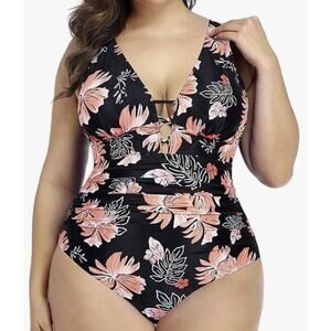 16W Women Plus Size One Piece Swimsuit Tummy Control Lace up Swimwear- NEW
