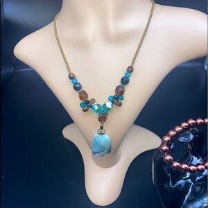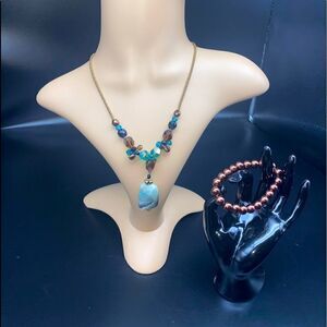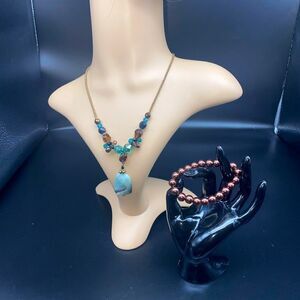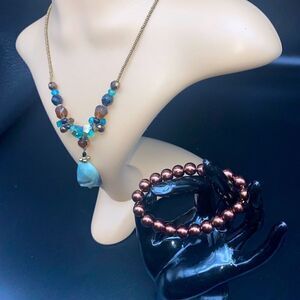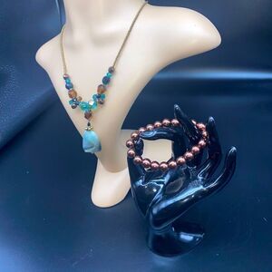 This is a necklace and bracelet combo with necklace described above. Bracelet is 7” stretch type bracelet with brown beads