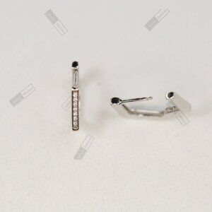Modern geometric earrings crafted in genuine .925 sterling silver with rhodium plating, featuring a clean angular silhouette and a bright polished finish. The front-facing design shows subtle bright details that add a refined and elegant touch. Their secure and comfortable push-back clasp ensures reliable wear for everyday use.