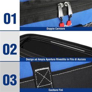 🧿Premium Materials & Construction - This tool bag is made from 600D polyester fabric which provides unmatched durability and reliability. The double fabric with fine stitching of the entire tool body makes the bag extremely tough and long-lasting.No need to worry about your tool bag getting damaged or breaking while in use.