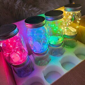 Eight 16oz Mason Jars, with CR2032 Battery Operated Fairy Lights.