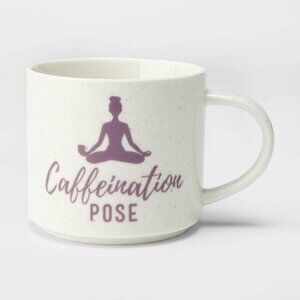 Description: Power posing is over. Caffeination posing is in. Whether you?ve crafted a slow and deliberate morning routine or you chug your fuel mid blow-dry, the Caffeination Pose Mug from Threshold? understands what it really means to be centered. Featuring a mauve-infused purple illustration, this mug showcases a yogi holding a cup of coffee in lotus pose, underlined with the phrase?Caffeination Pose? for a relatable twist on your traditional yoga terminology.