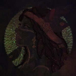 This is my original artwork. It took over 40 hrs to create. It is a 16x20 acrylic pour painting with 3mm and 4mm rhinestones. The moon glows in the dark. The canvas is in a wood black frame. Ready to be hung and complete your room decor. I have my artwork hung at Crafting Creations in the Stroud mall and shipping is available