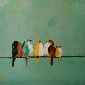 16x24 Colorful Songbirds on Wire Art Print Unframed Canvas Art Print Wall Decor