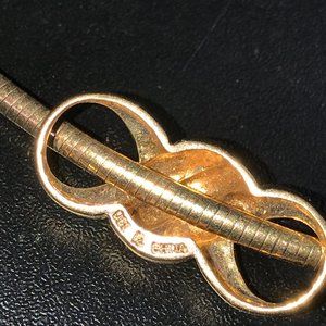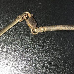 This is a 17" long Omega Necklace that is 4mm wide. It is vermeil which is 18kt gold plated over sterling silver. The pendant is an XO design or OXO with a diamond accent. It is also vermeil.