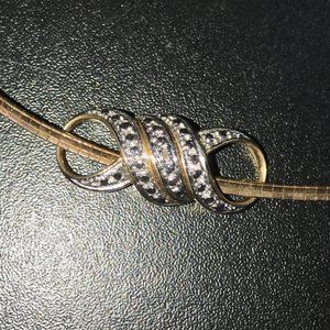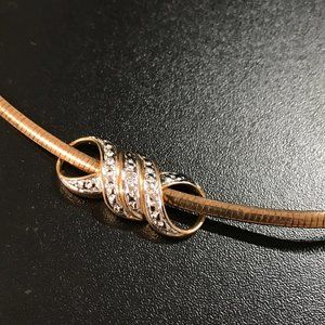 17" 18Kt Gold Vermeil Omega Necklace and OXO Diamond Accent Pendant