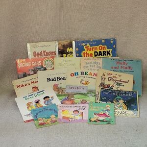 Delight your child with this colorful collection of children's storybooks. Perfect for bedtime stories and early reading adventures.There are 17 books total. 3 are hard cover A Happy Day Book and the rest are paper back. The gingerbread man, I know God Lives Me, My ABC Zoo Book and many more. Check the pictures for titles and condition.
