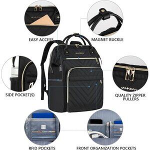 🧿USB CHARGING PORT & RFID BLOCKING: VANKEAN work bag has a USB charging port extended on the side of the backpack and built-in a charging cable inside, it offers easy access to charge your phone (POWER BANK is not included). RFID design pockets protect your personal information security, there are three card slots. No more worries about data theft by RFID scanners.