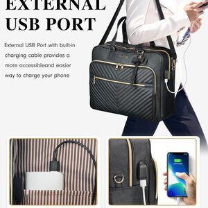 Versatile Convertible Briefcase Backpack for Women: This large laptop tote bag for women comes with comfortable padded leather handle and 2 detachable & adjustable shoulder strap means you can use it as a chic tote, a hands-free backpack, or wear it as a shoulder bag, making it super versatile! External USB port makes it easy to charge your phone while walking or shopping, it is suited to your different use needs for work, college, office, business trip