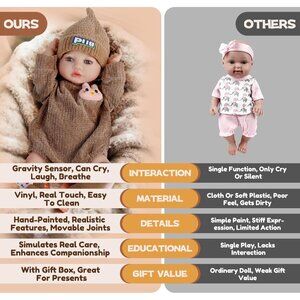 Powered by 3×AA batteries (NOT included), this reborn baby doll reacts vividly to movement and touch: she giggles when lifted, cries aloud when gently patted, plays soft breathing-like sounds when lying on her back, and makes gentle crying sounds when lying face down. The intelligent gravity sensor gives every playtime moment more fun and realism.