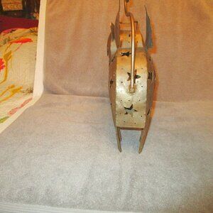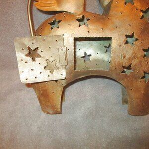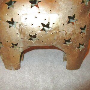 17" Metal ANGEL Fairy CAT Candle HOLDER Folk Art WINGS Fantasy STARS Sculpture