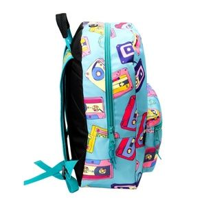17'' cassette "mix tape" backpack. Padded back. Padded straps. Earphone slot. Heavy duty zippers. 600D polyester (high tensile strength) New with tags. Measures 17'' x 12'' x 6''