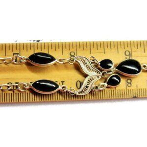 17" Necklace Filigree Black Onyx Teardrop Dangle Chain Vtg Sterling Silver 925