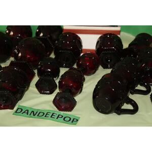 Vintage Assorted 17 Piece Avon Cape Cod Ruby Red Glass Drinkware. comes with all shown. There is 1 Tall 12 oz tumbler glass 5.5" Tall 3" Diameter,1 champagne Goblet 5.5" x 3 /8" Diameter, 0- Cape Cod Ruby Red Mugs 5" Tall 2.5" Diameter, 4 Cape Cod Footed Glass set- 2 of which have a box, the box has wear. These measure 3.5" Tall 1 has a minor surface chip in the rim see photo. 3 Cordial Glasses 4.5" Tall 2" Diameter- 1 has a chip in the stem see photo. 3 Goblets 6" Tall 3" Diameter, 1 Open Sugar Bowl 3.5" Tall 3" diameter, 2 Tea Cups (saucers in another auction of mine) they measure 3" x 3". Great overall conditions, I believe All Are Cape Cod Type . From A Non smoking home. Find This in My Drinkware and Housewares