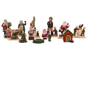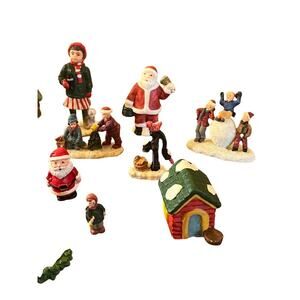 17 Piece mix collection of Christmas village people, trees, house, santa claus